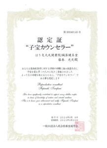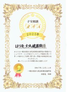 日頃の子宝相談や治療での妊娠症例の実績に対し、表彰して頂き誠にありがとうございます。