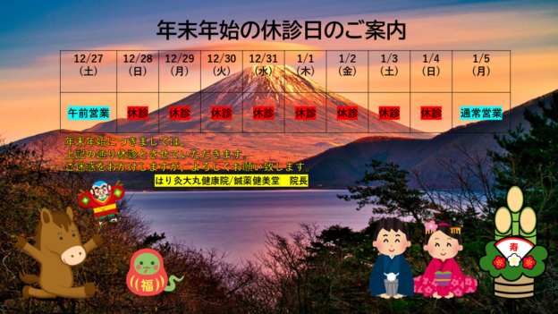 また、【年末年始休診は2025年12月28日(日)~2026年1月4日(日)】とさせて頂きます。